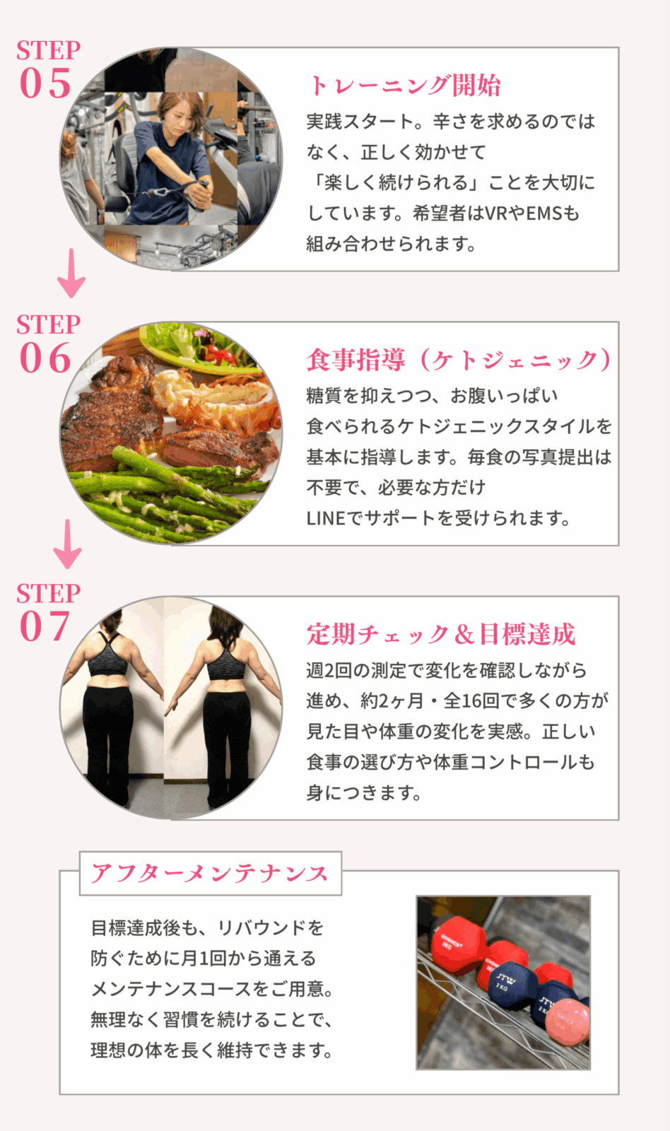 初心者でもキチンと効かせられて効果が判るよう細やかに指導させて頂いておりますのでご安心ください。